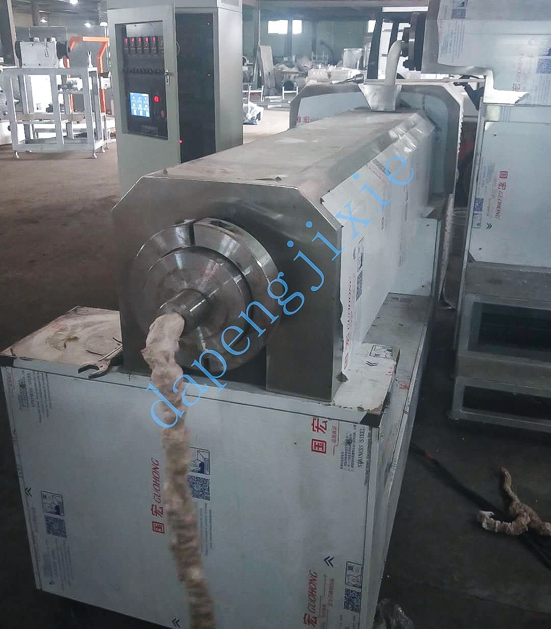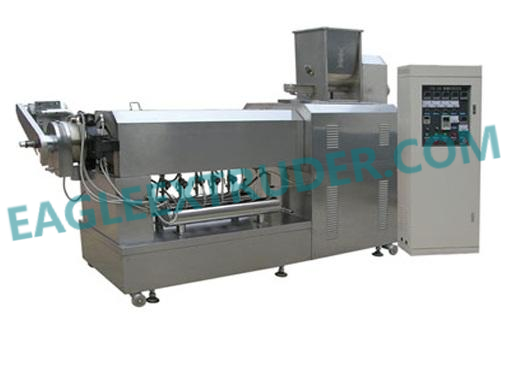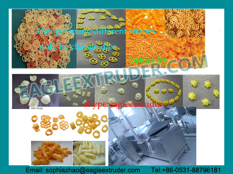 單螺桿擠壓機(jī)由供料系統(tǒng)、擠壓系統(tǒng)、旋切系統(tǒng)、加熱系統(tǒng)、傳動(dòng)系統(tǒng)、控制系統(tǒng)組成,主要用于油炸食品的加工。